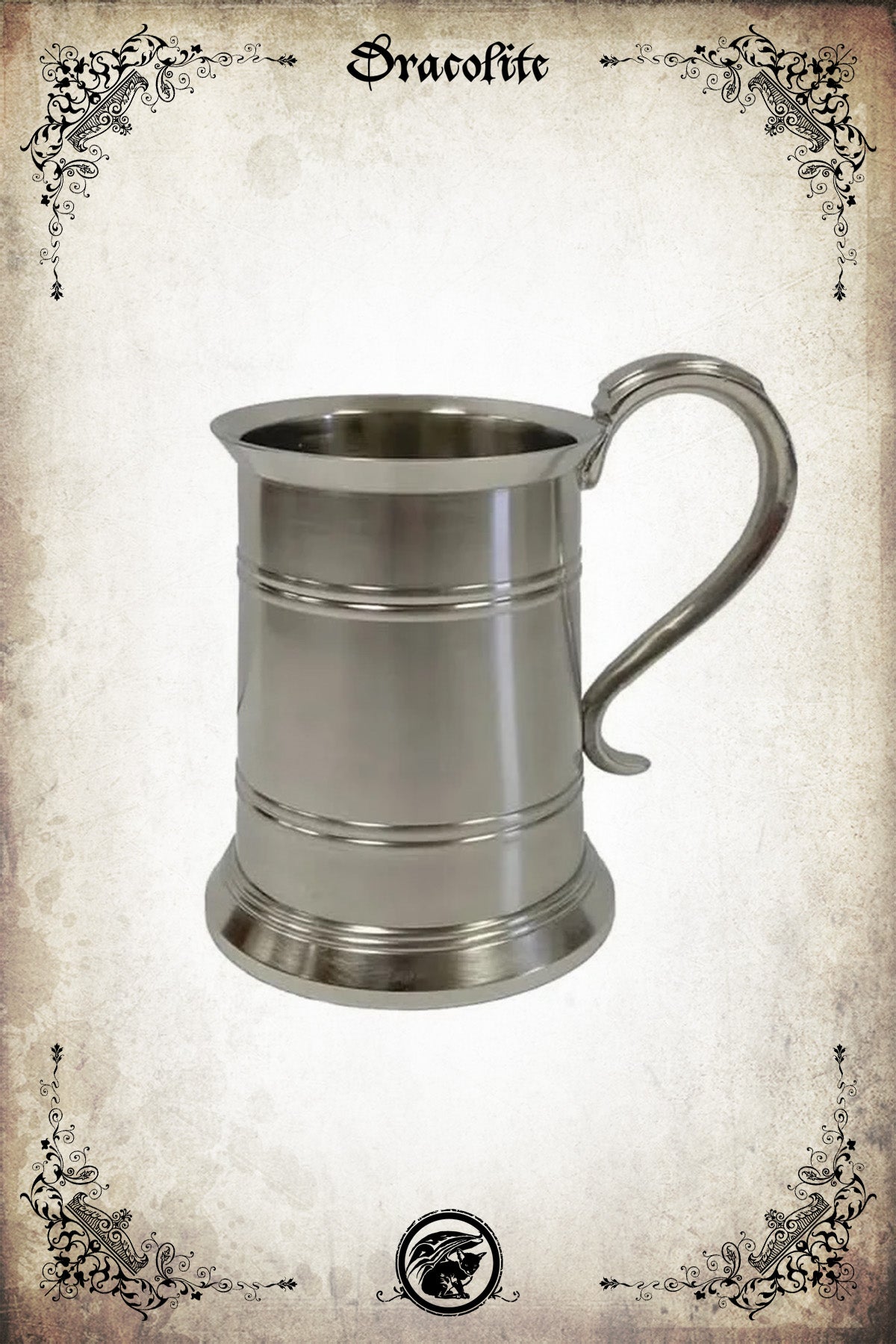 This colonial-style mug is reproduced in brass and plated with pewter. The mug can be used for food and can hold 16 ounces of liquid. This mug also has a very pleasant weight. Plated with pewter on the outside and brass on the inside, this mug is a great addition to colonial decor.