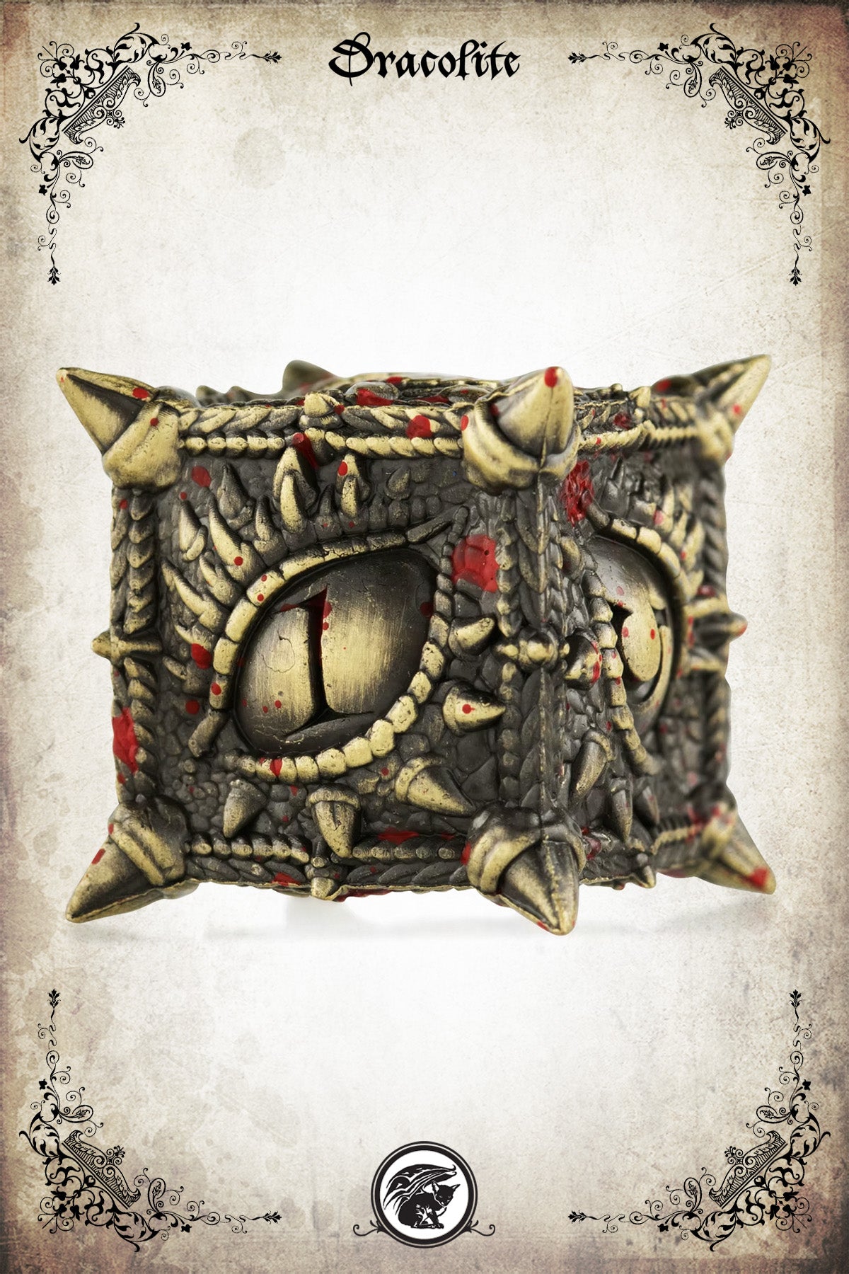 Discover this sumptuous set of metal dice with a black and gold draconic design, ideal for your role-playing games. Each die is finely sculpted with raised details and a luxurious finish that combines style and robustness. A must-have for any self-respecting adventurer!