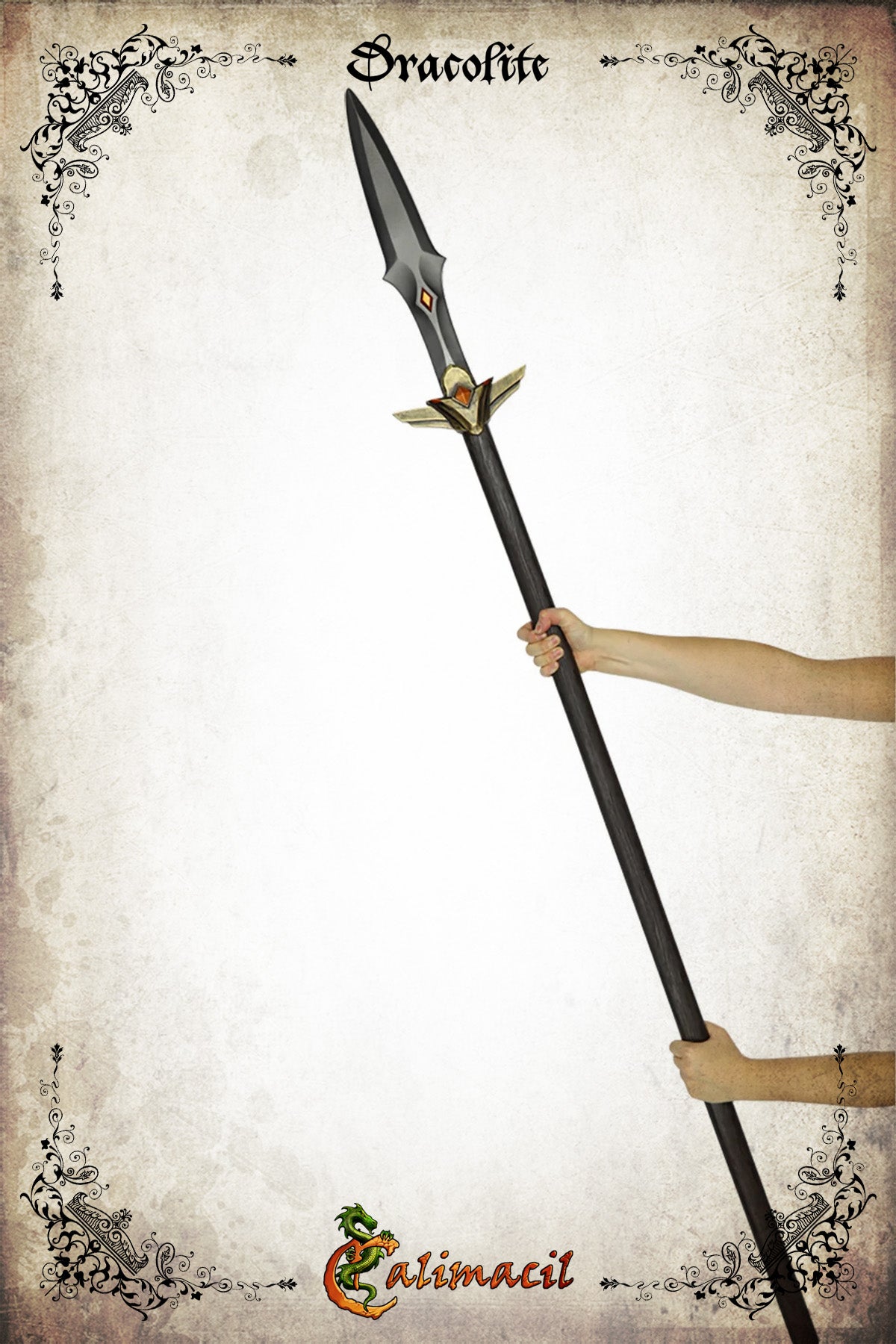 Cette version améliorée de l’Elder Spear intègre toute la technologie avancée signée Calimacil. Son âme en fibre de verre est enveloppée d’une mousse Calimacil ultra résistante et dépourvue de latex, garantissant une arme à la fois sécuritaire, durable et parfaitement adaptée aux combats intensifs en Grandeur Nature (GN). Avec ses 180 cm de longueur et un poids d’environ 965 g, Draceltia offre une portée optimale tout en restant maniable, idéale pour incarner des rôles variés tels que gardes de cité, sentinelles elfiques, protecteurs de temples ou explorateurs de ruines mystérieuses.