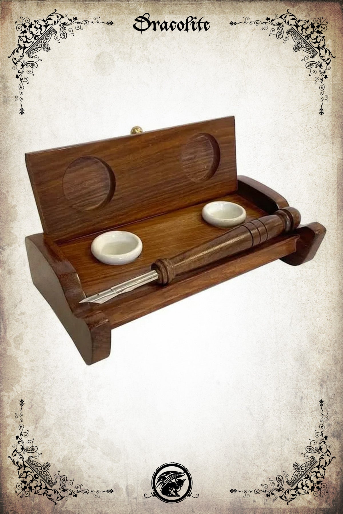 Apportez une touche d’authenticité et d’élégance à votre espace de travail avec cet encrier de scribe en bois, qui évoque l’atmosphère d’un véritable scriptorium. Conçu pour allier esthétique classique et fonctionnalité, ce coffret est un incontournable pour tous les passionnés d’écriture traditionnelle.